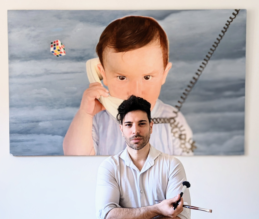 In 2018, Ezequiel traveled to the city of Come, Italy where he isolated himself in the mountains for 6 months, producing a series of paintings named “Fragmentation and Totality”. These paintings are the result of a maturation process, from multiple ideas, based mainly on concepts from Hegel, David Bohm and Henri Bergson. Of a surrealistic style, his large format oil paintings display the esthetical influence of Dali and Magritte, as well as some French paintings from the 19th century.